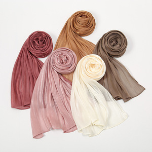马来热销爆款亮丝海岛皱雪纺百搭长巾女时尚流行舒适简约披肩头巾|ms